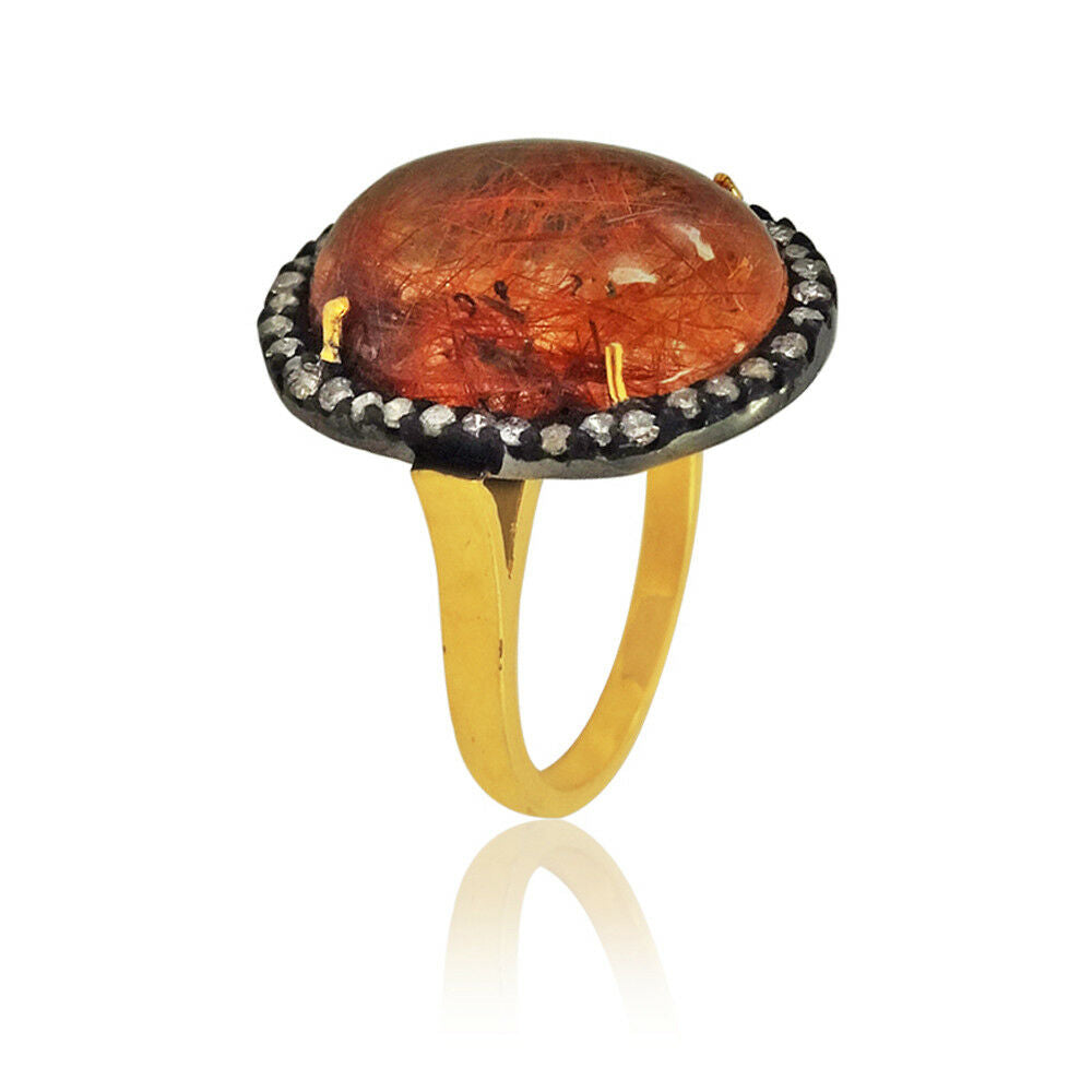Natural Rutilated Quartz Pave Diamond 925 Silver Ring Jewelry Size 7 RIMJ-48